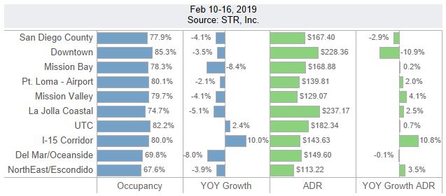 San Diego Lodging Performance – February 10-16, 2019