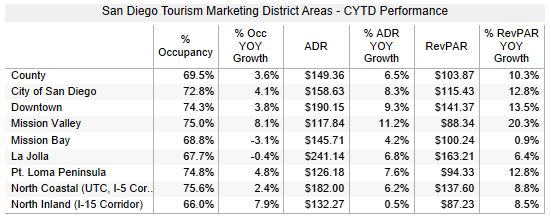 - SD County occupancy was 69.5%, up 3.6% from 2018