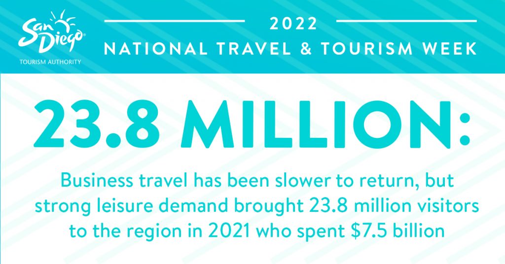 - San Diego’s tourism’s recovery continues to be spurred on by strong leisure demand, the growing number of booked group meetings and conventions, and the return of international travel to the destination. #NTTW22 #FutureofTravel #SanDiegoTourism @USTravel
