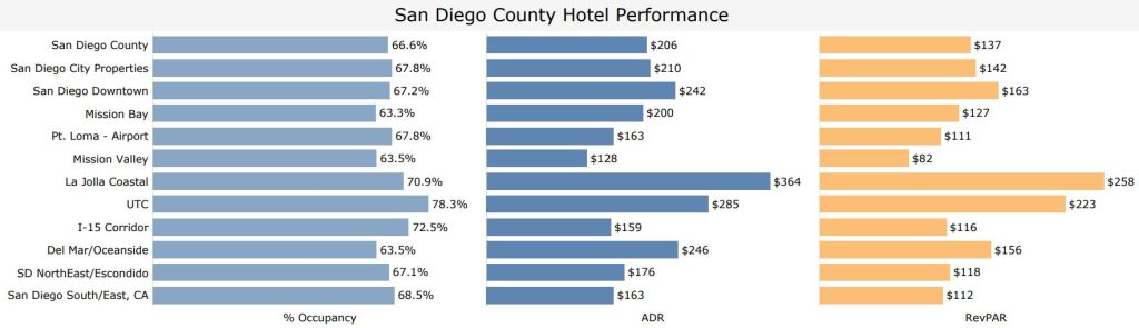 o Highest Performing Areas Locally: UTC (78.3%; -5% YoY), I-15 Corridor (72.5%; +2.1% YoY), and La Jolla (70.9%; +4.1% YoY).
