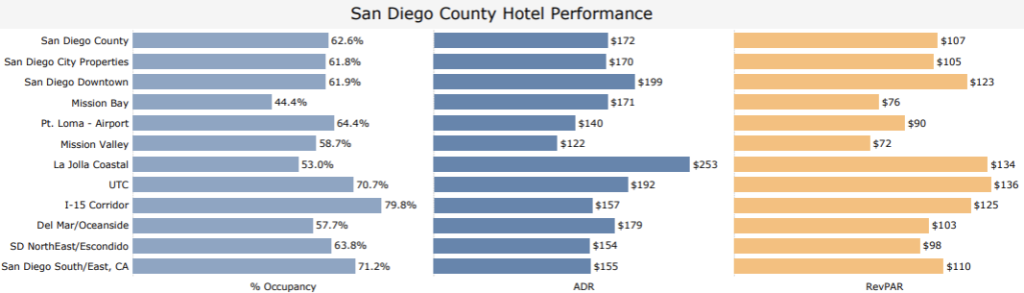 o Top Performing Local Areas: I-15 Corridor (79.8%; +2.4% YoY), UTC (70.7%; -9.5% YoY), and Pt. Loma (64.4%; -11.5% YoY)